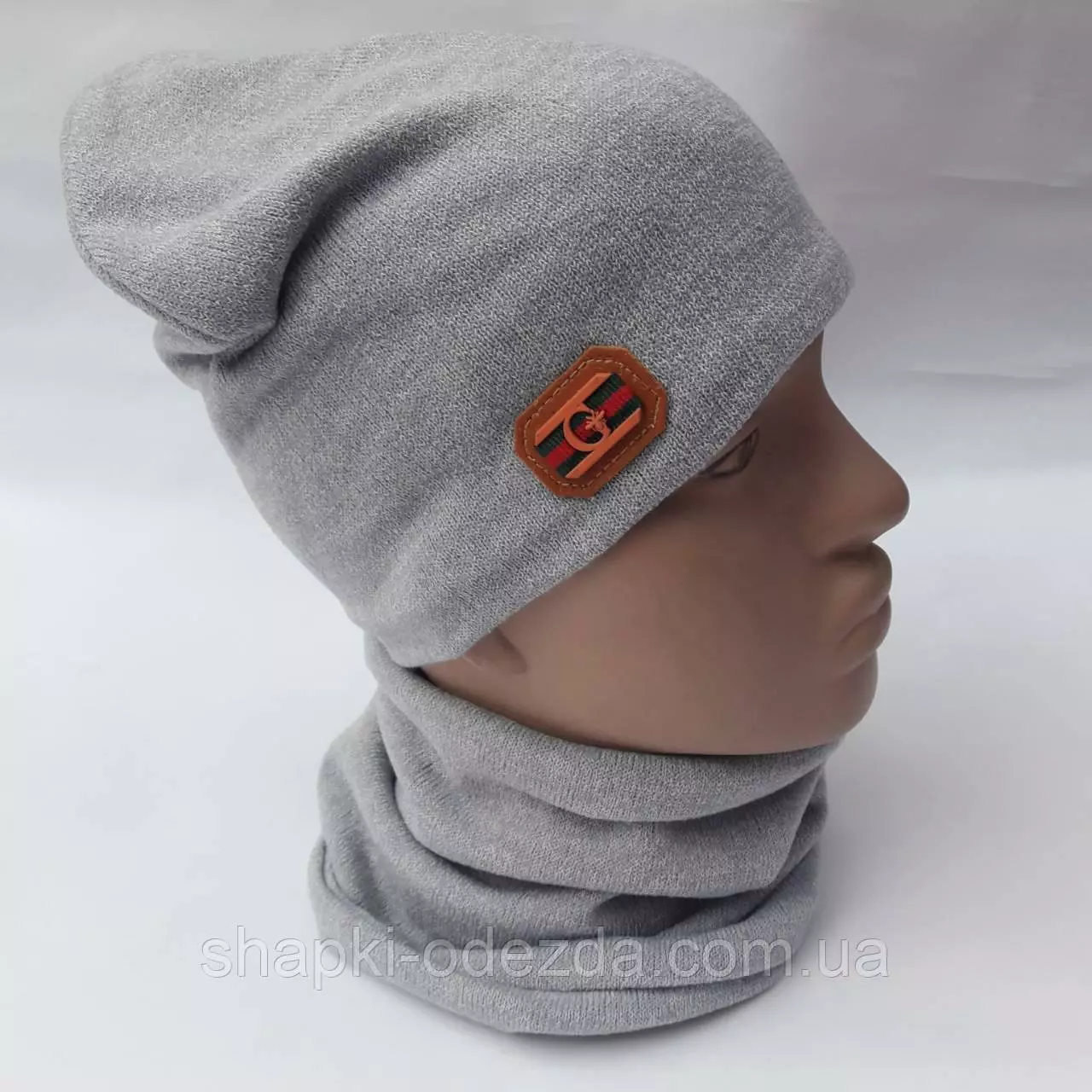Шапка трикотажная + хомут для мальчика на хб подкладке р 50
