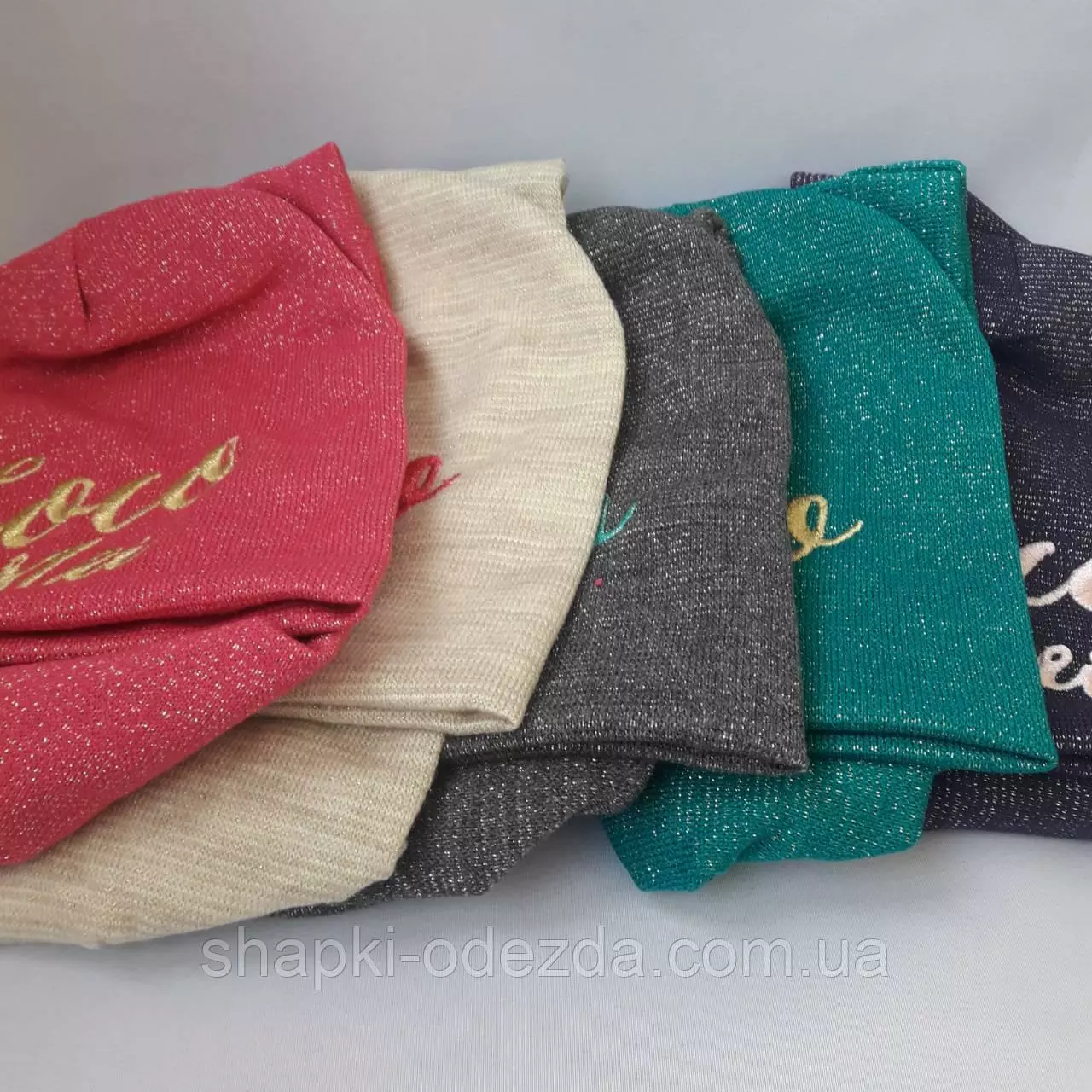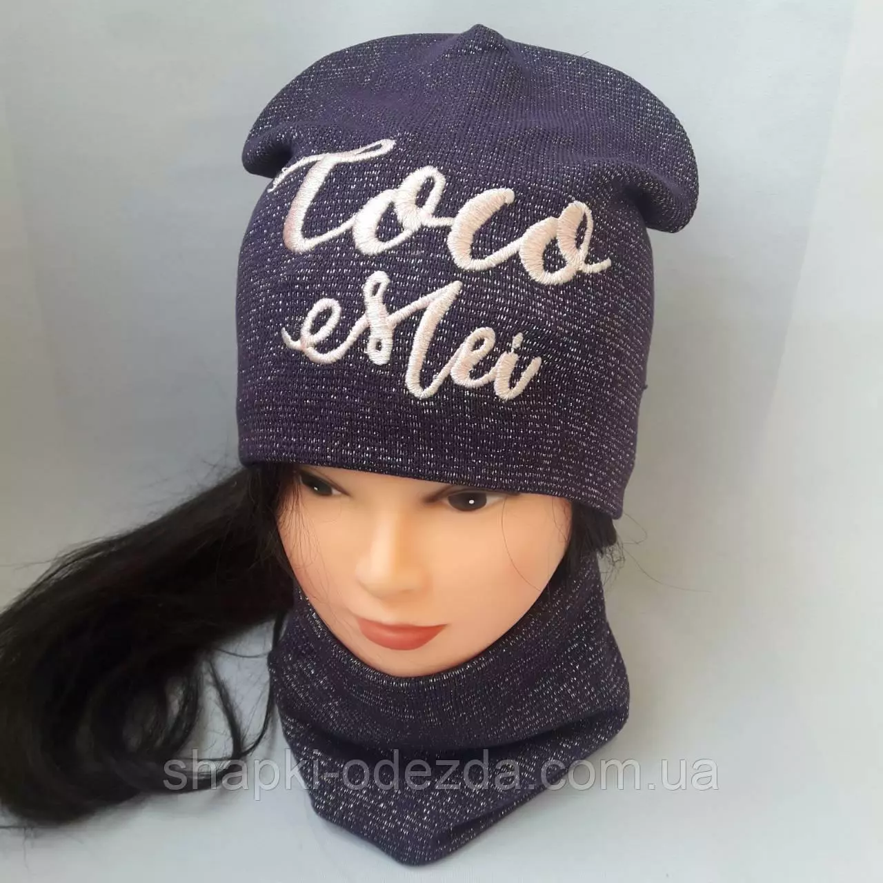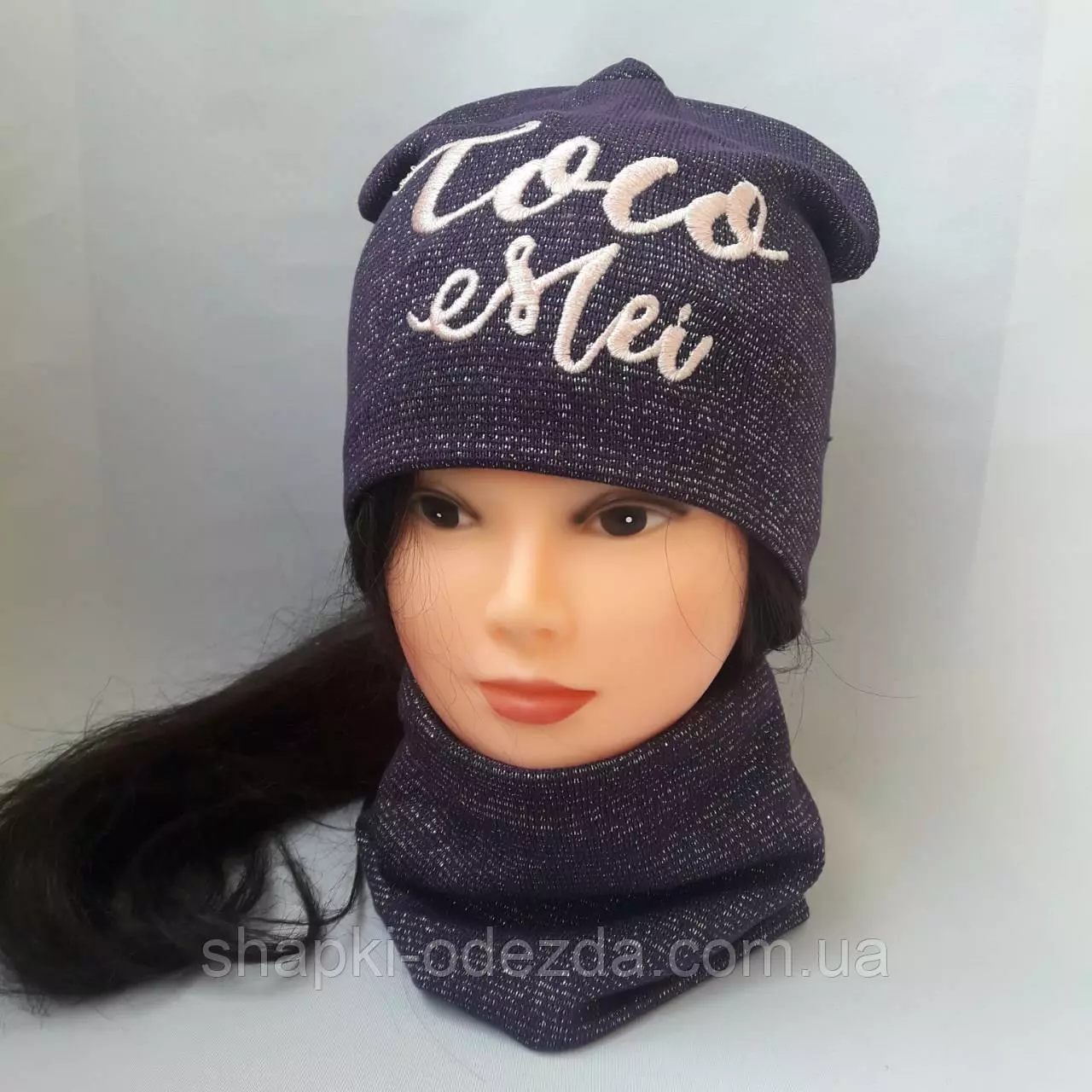Шапка трикотажная люрикс на хб подкладке+ хомут для девочки р 50-52