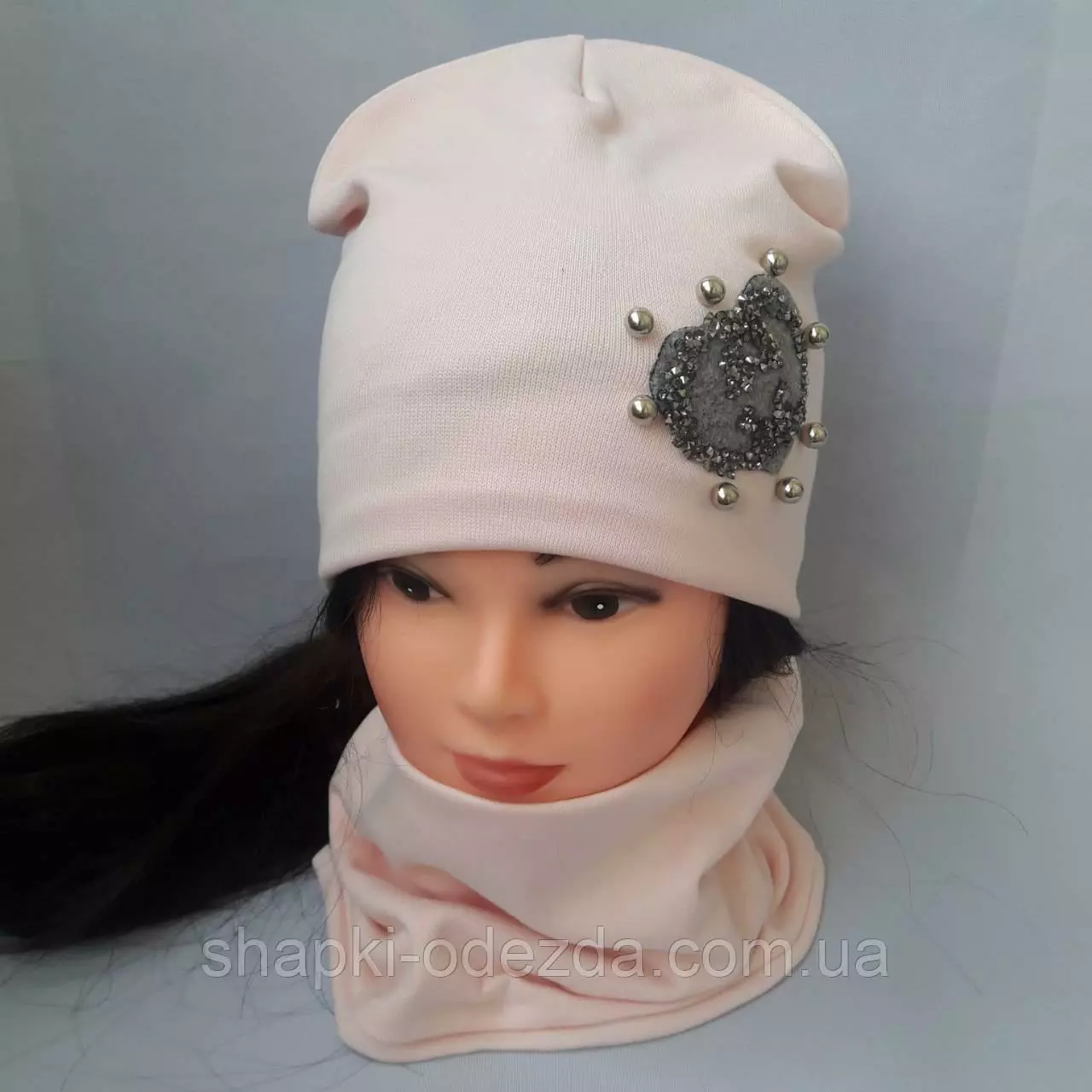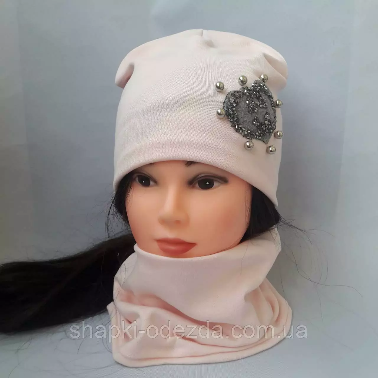 Шапка трикотажная на хб подкладке + хомут для девочки р 54-56