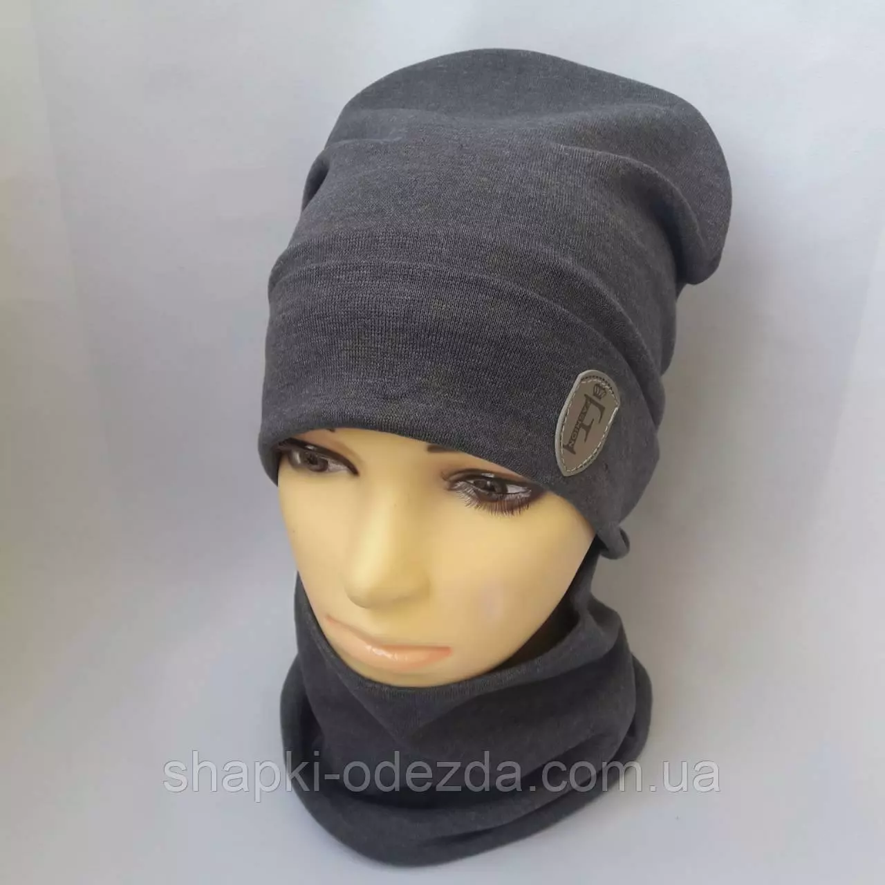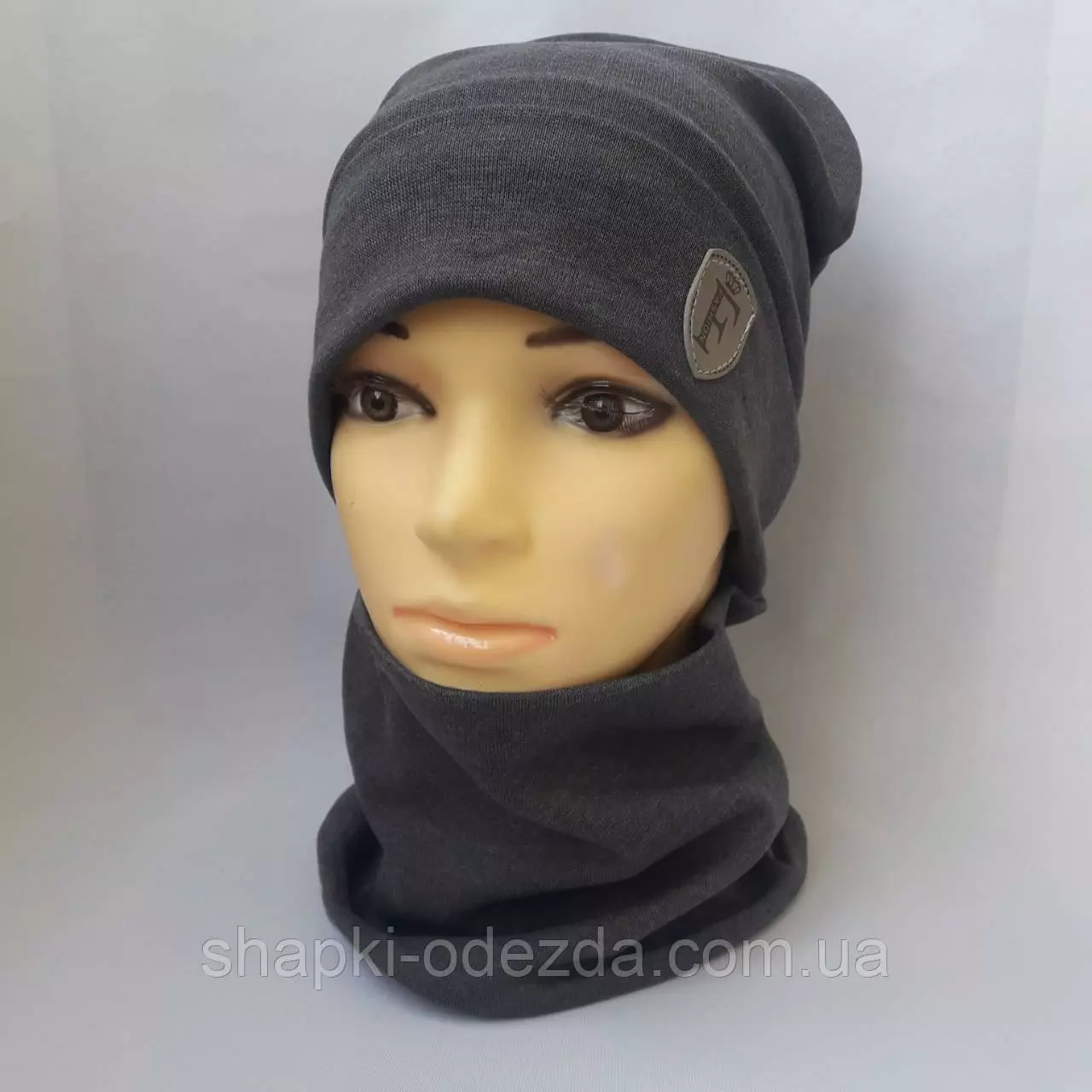 Шапка трикотажная на хб подкладке+ хомут для мальчика р 52-54