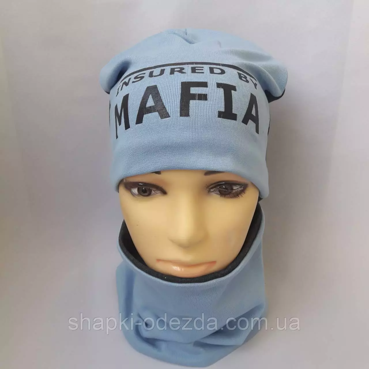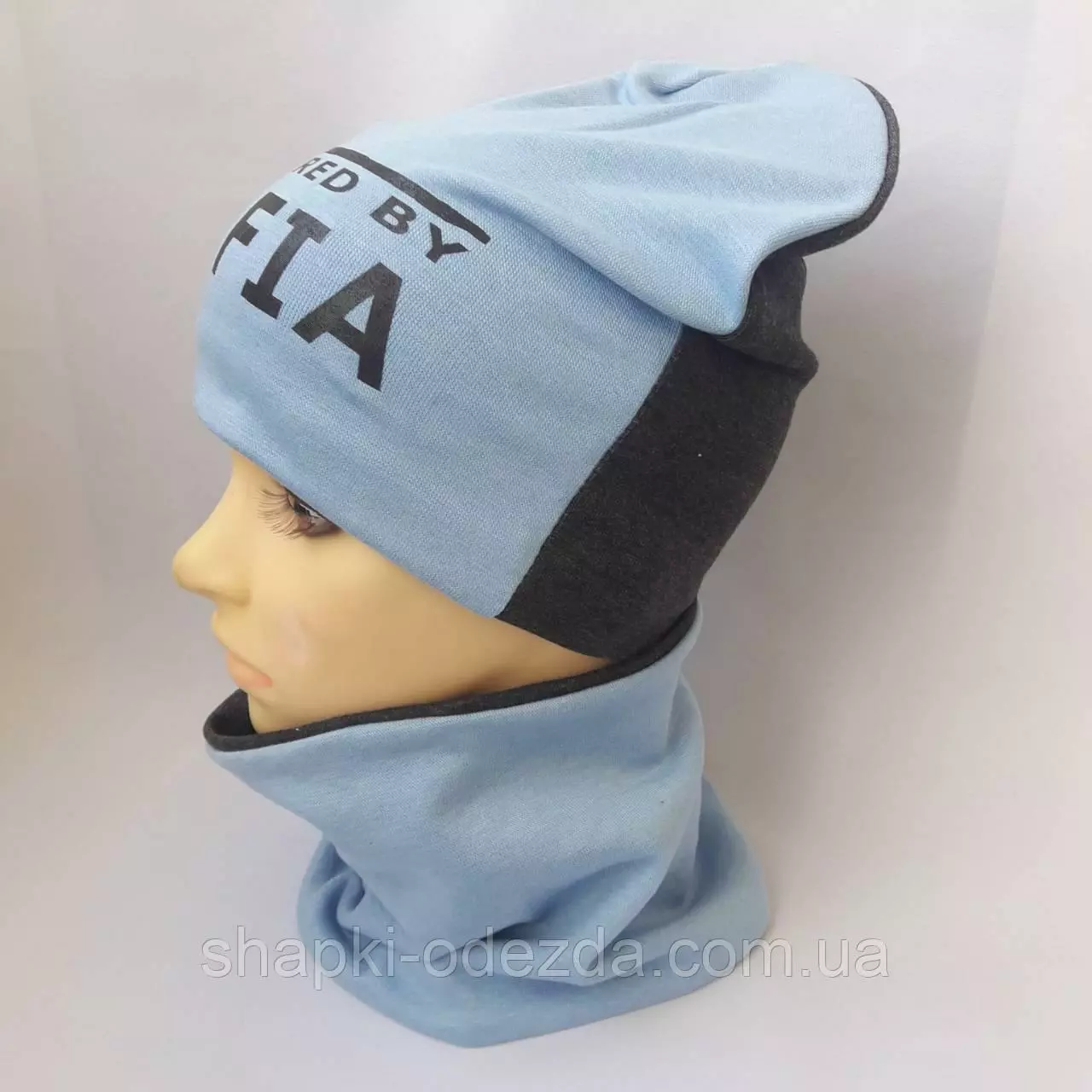 Шапка трикотажная на хб подкладке+ хомут для мальчика р 52-54