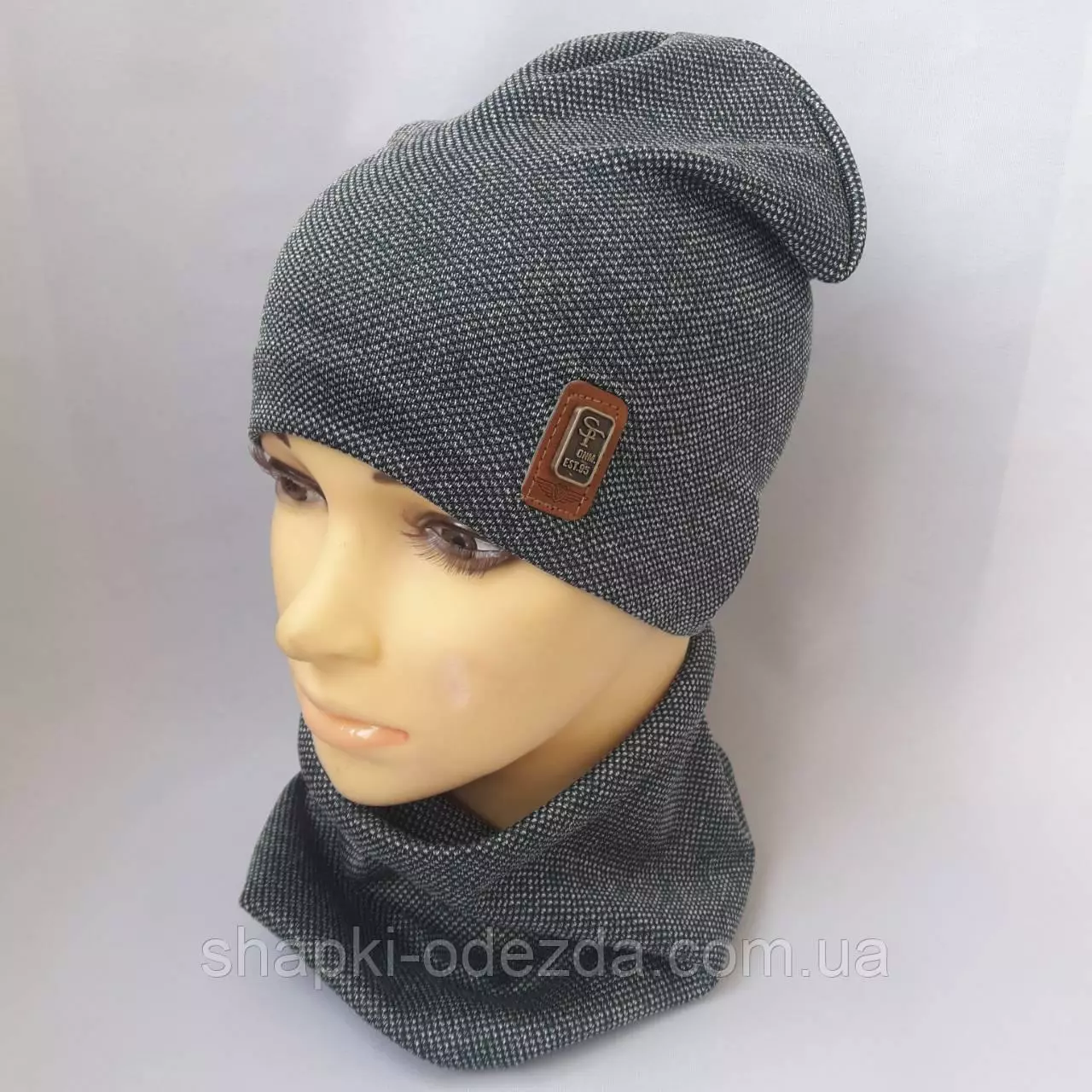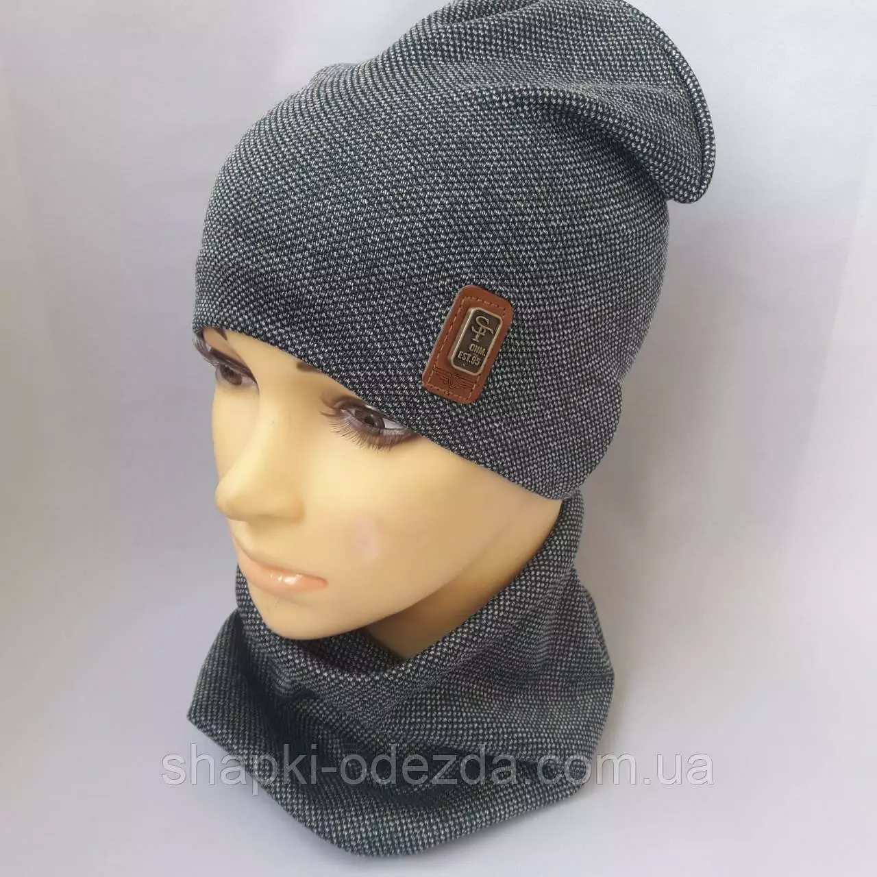 Шапка трикотажная на хб подкладке+ хомут для мальчика р 52-54