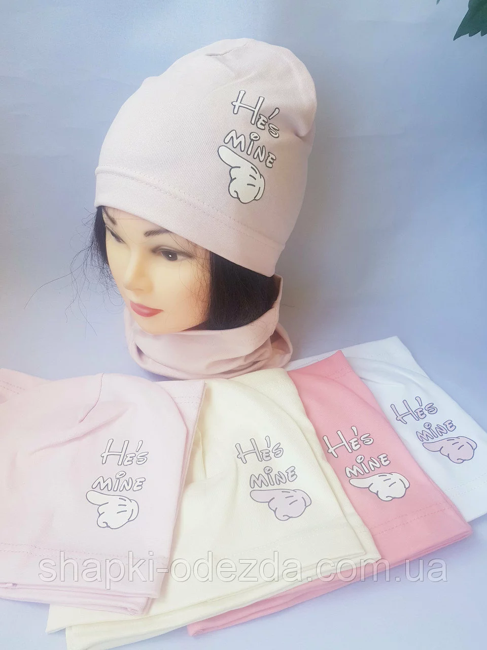 Шапка трикотажная однослойная + хомут для девочки р 52