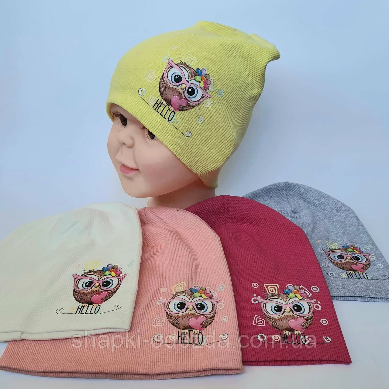Шапка трикотажная рубчик двойная для девочки " Совушка " р 50-52