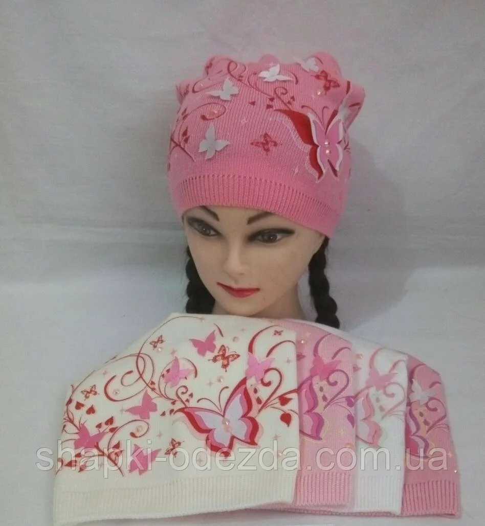 Шапка вязаная для девочки с бабочками р 52-54