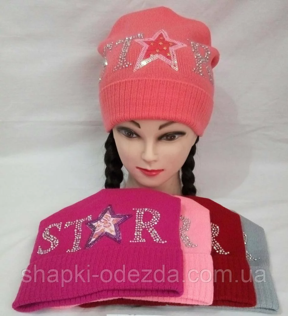 Шапка вязаная для девочки С надписью со страз р 50-52