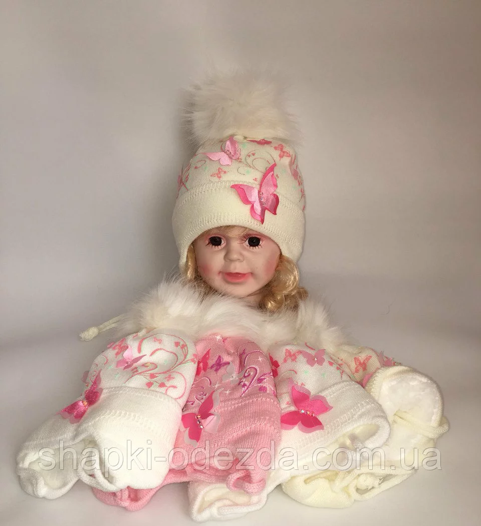 Шапка вязаная для девочки с натуральным мехом р 40-42