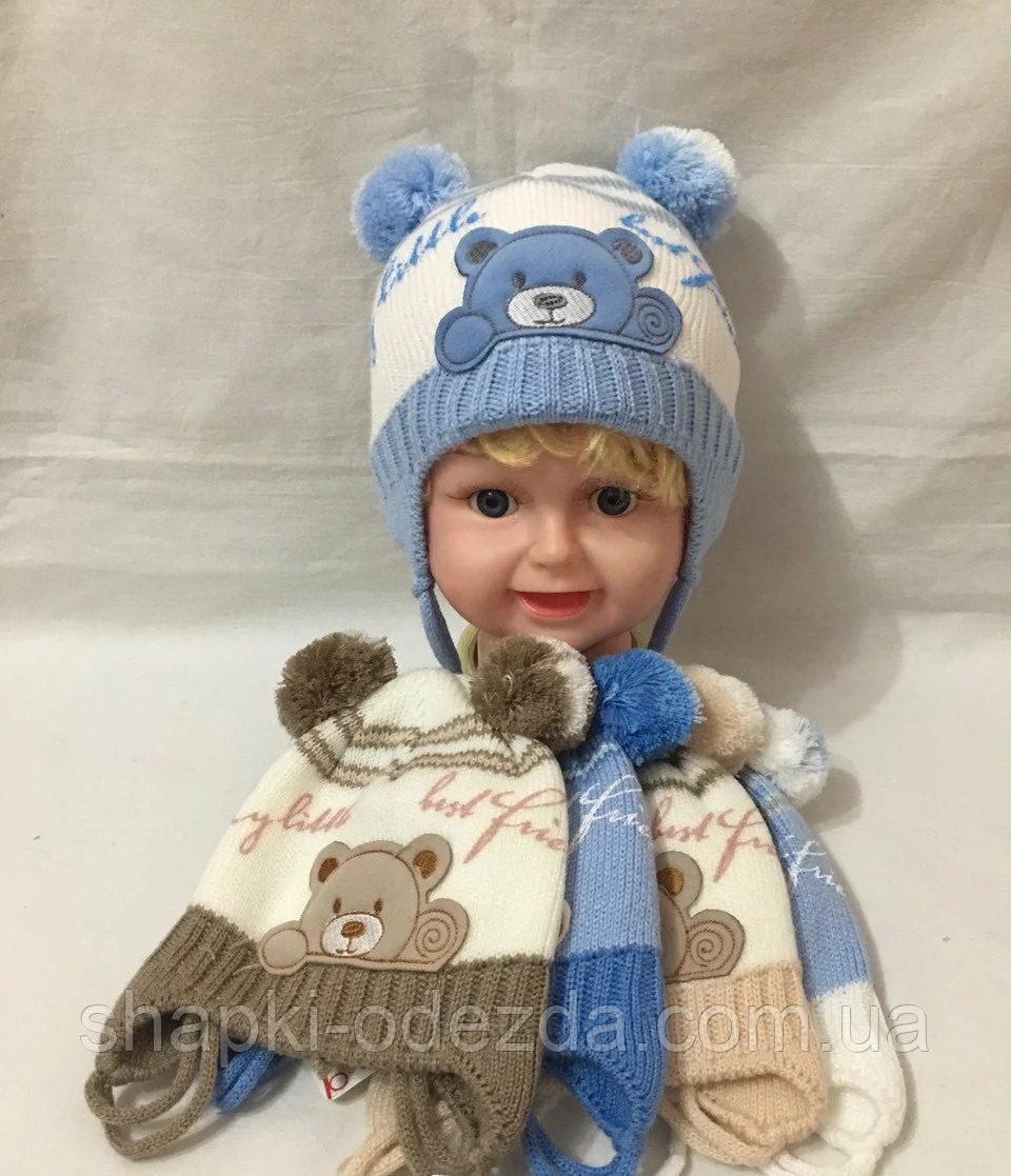 Шапка вязаная для мальчика на завязке р 50