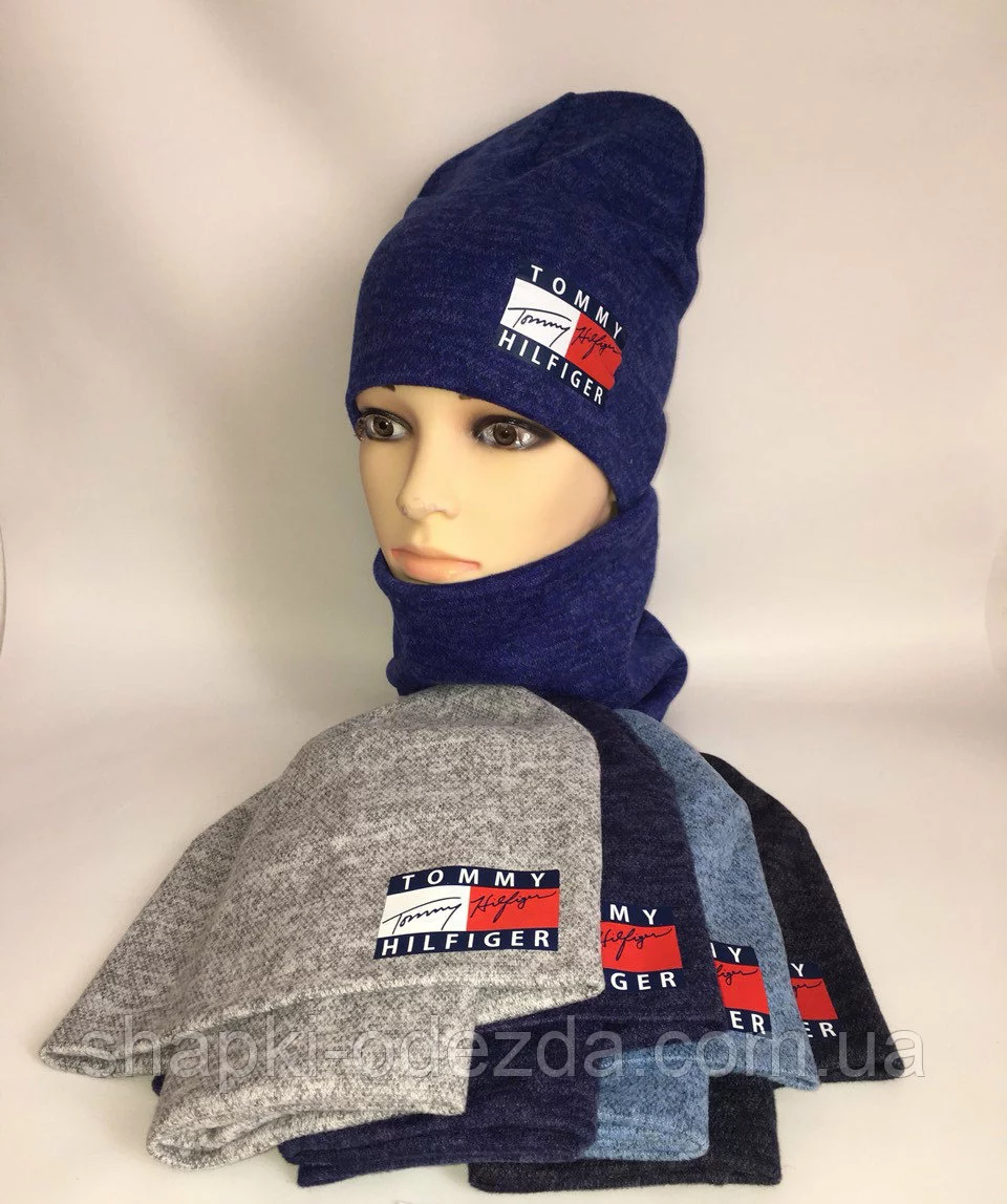 Шапка вязаная двойная + хомут на мальчика р 52-54