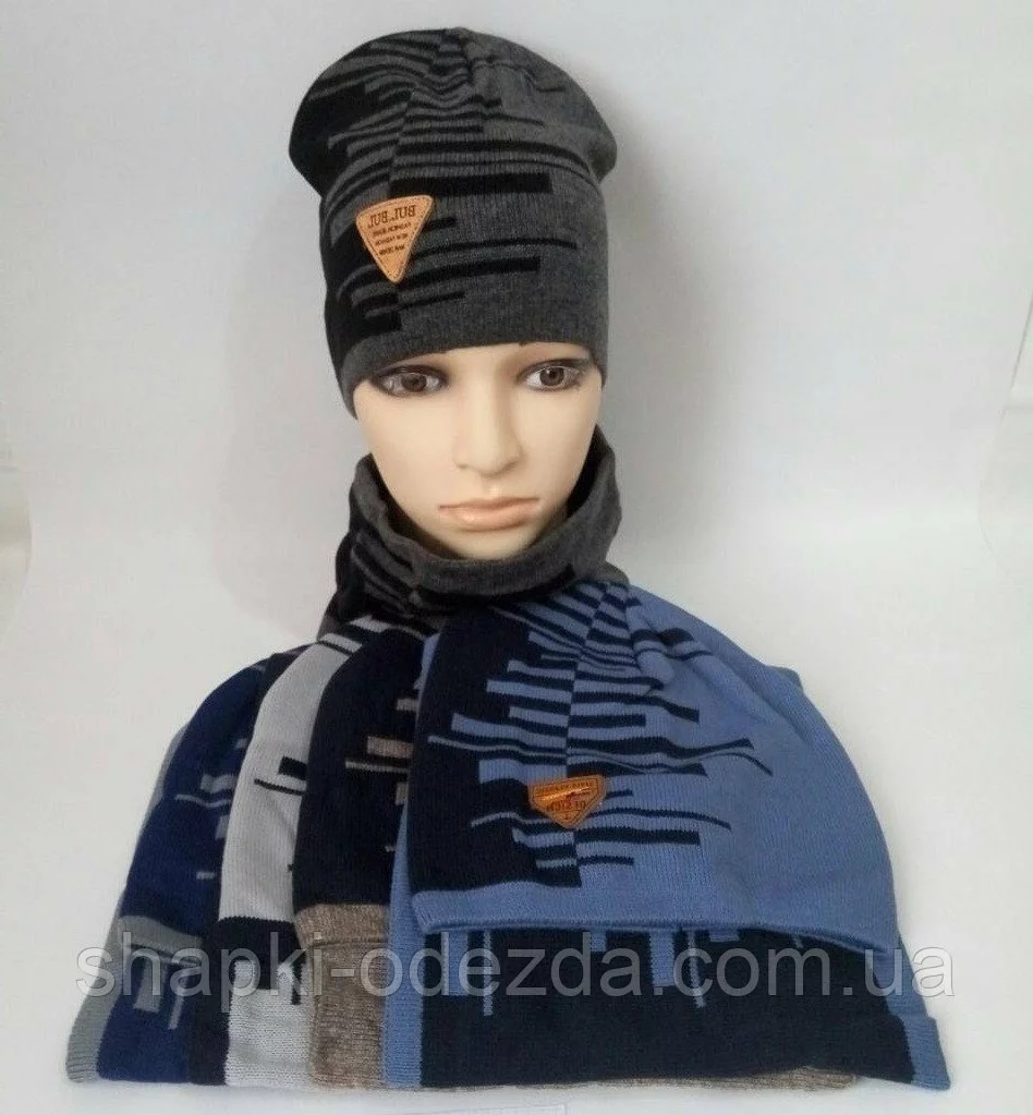Шапка вязаная двойная + хомут на мальчика р 52-54
