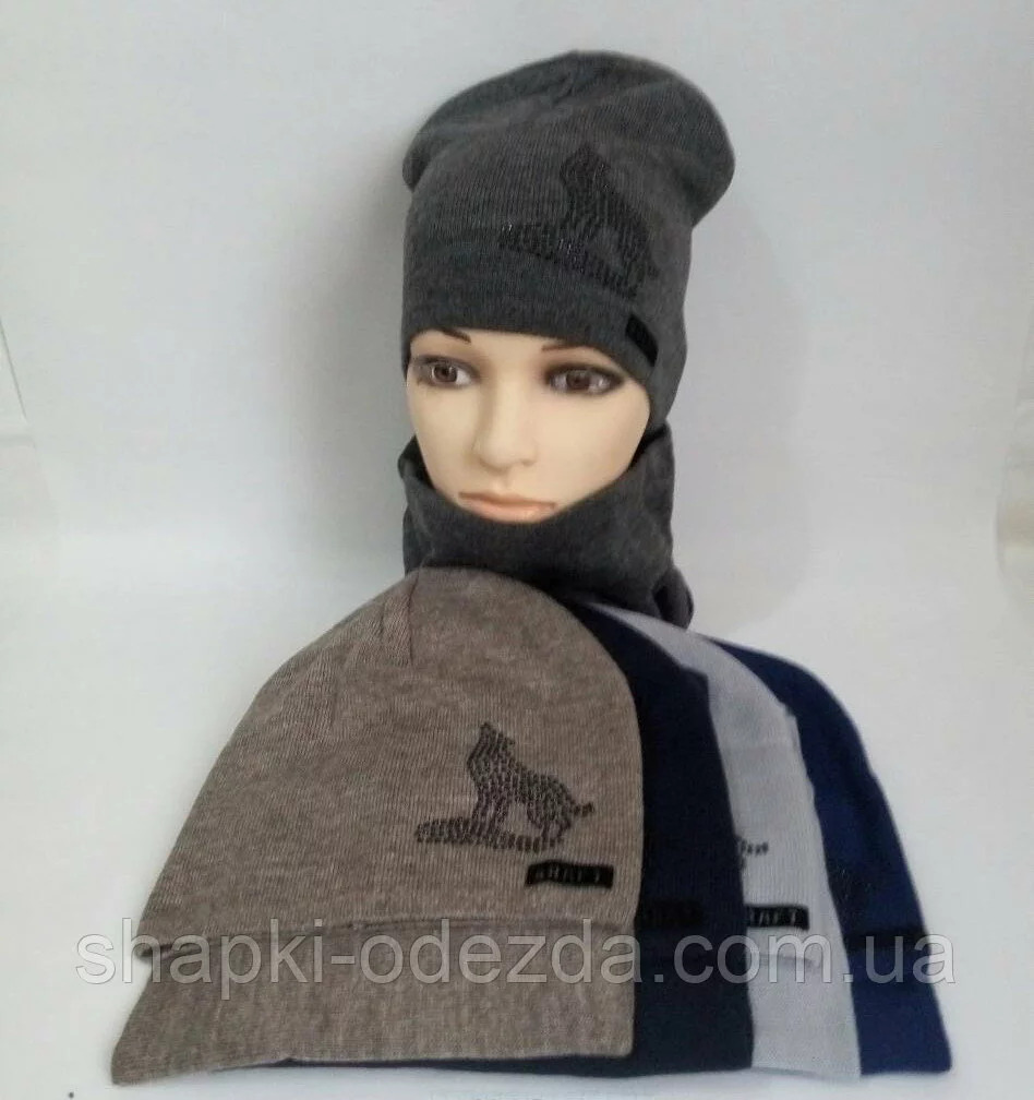 Шапка вязаная двойная + хомут на мальчика р 52-54