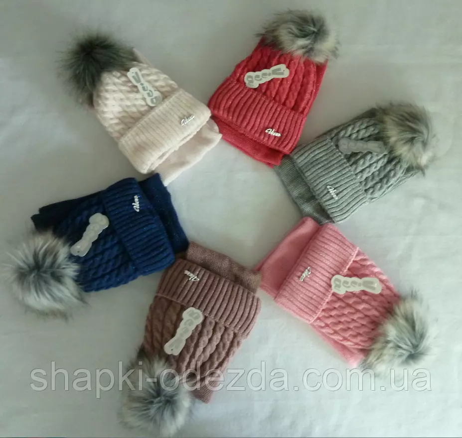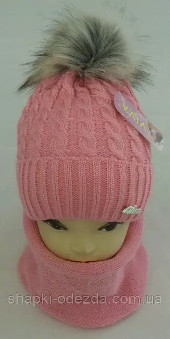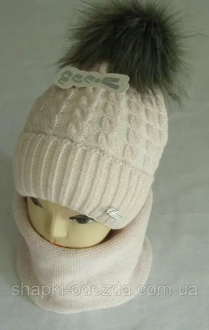 Шапка вязаная + хомут для девочки акрил на флисе с люрексом