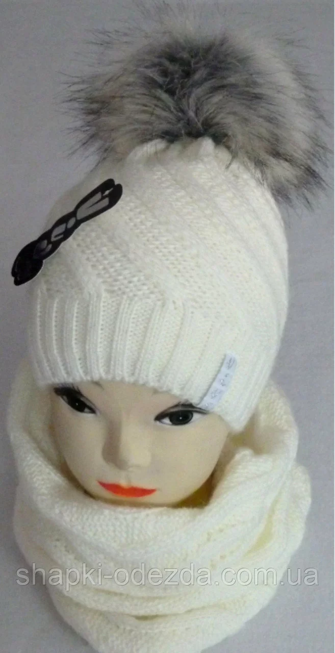 Шапка вязаная + хомут для девочки зима на полном флисе ЦВЕТА И КОЛИЧЕСТВО ОГРАНИЧЕНО