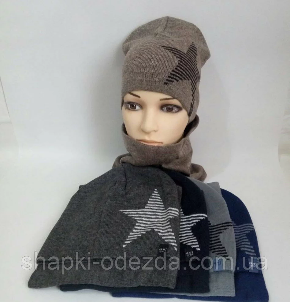 Шапка вязаная + хомут на мальчика р 52-54