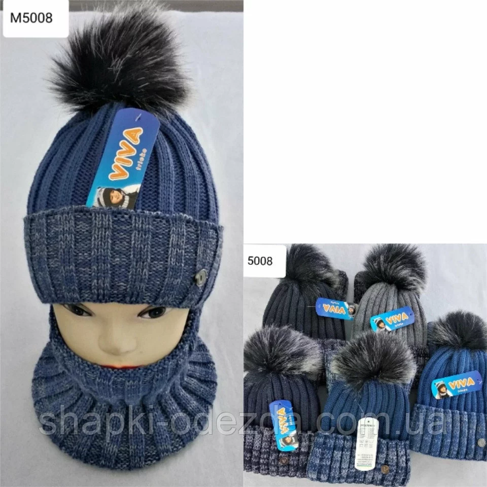 Шапка вязаная на флисе + баф для мальчика р 52-54