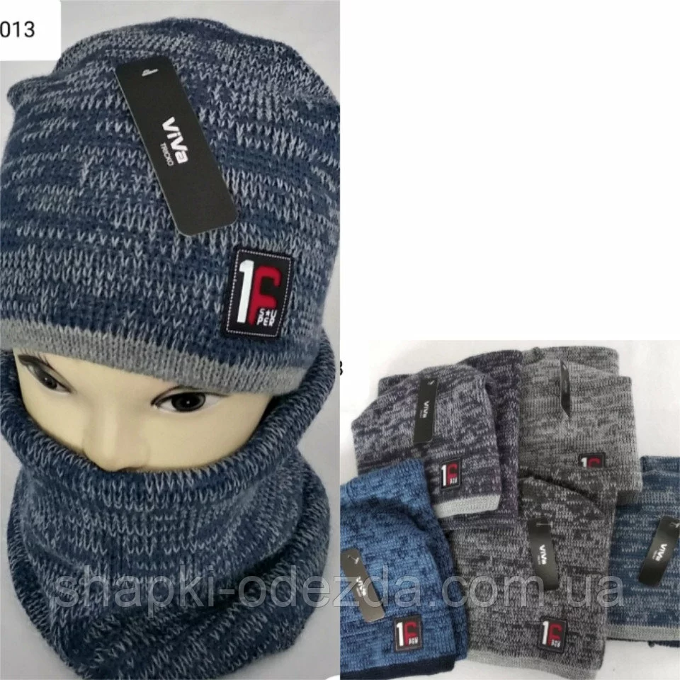 Шапка вязаная на флисе + баф для мальчика р 52-54