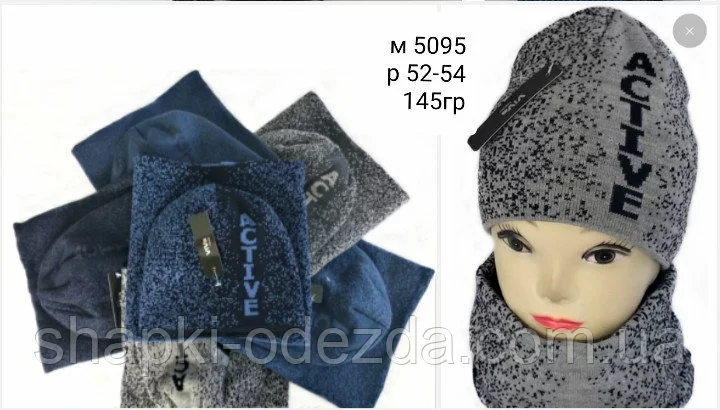Шапка вязаная на флисе для мальчика + баф р 52-54