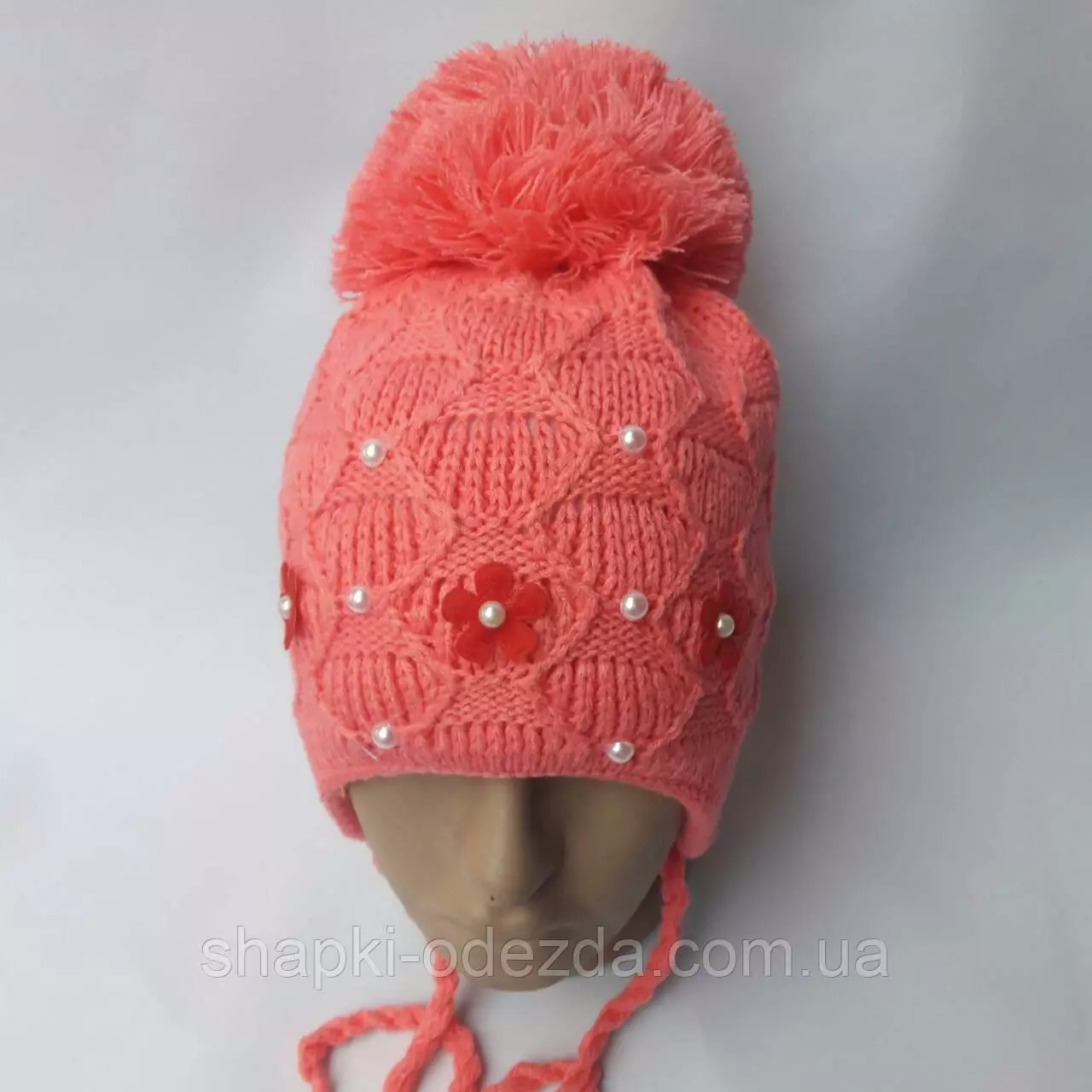 Шапка вязаная на завязке внутри на флисе р 36-38