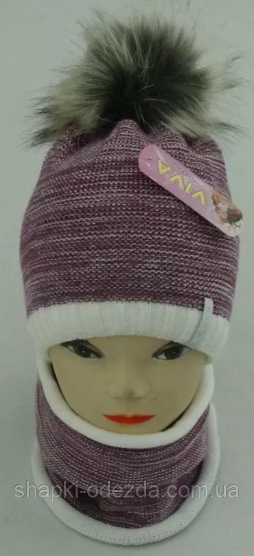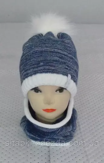 Шапка вязаная с бубоном + баф для девочки