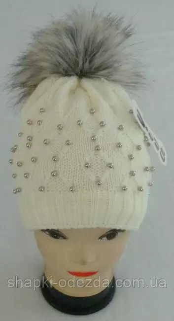 Шапка вязаная с бубоном для девочки