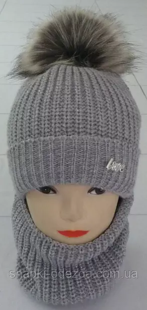 Шапка вязаная с бубоном + хомут для девочки