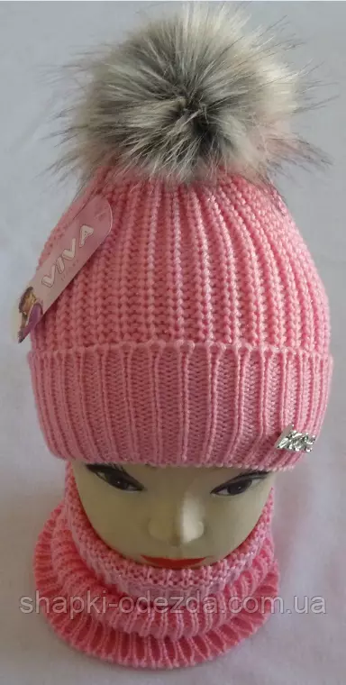 Шапка вязаная с бубоном + шарф для девочки