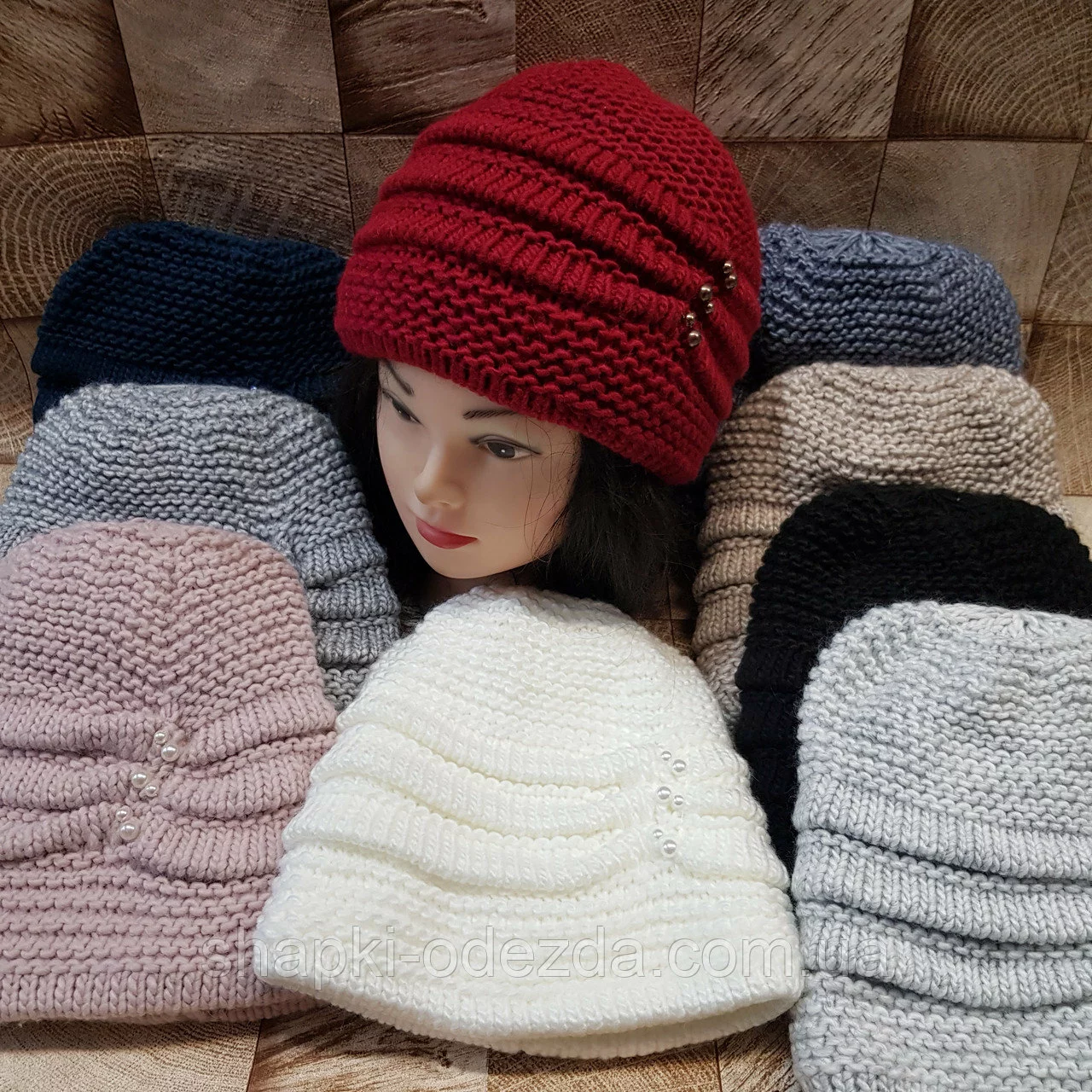 Шапка женская вязаная, зимняя на флисе, разные цвета