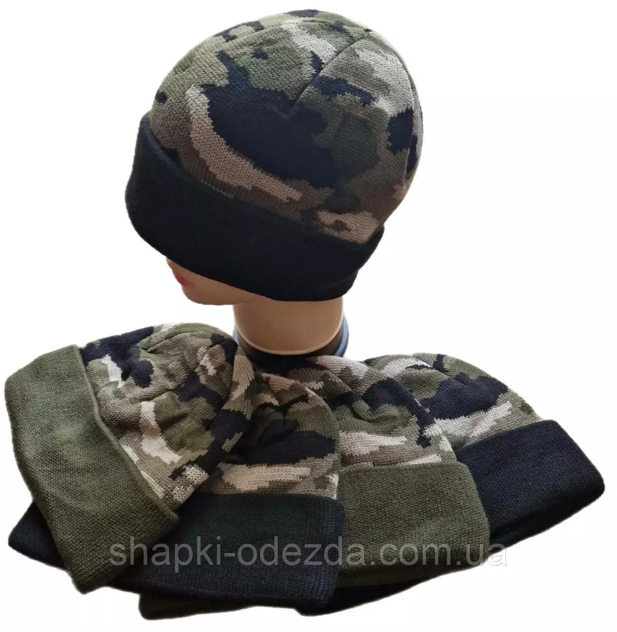 Шапка зимняя мужская двойная с подворотом камуфляж ( Эдем)