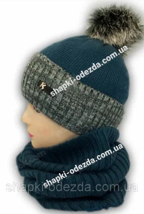 Shapki-odezda.com.ua Комплект для мальчика шапка двойная с бубоном и баф на флисе зимний , разные цвета