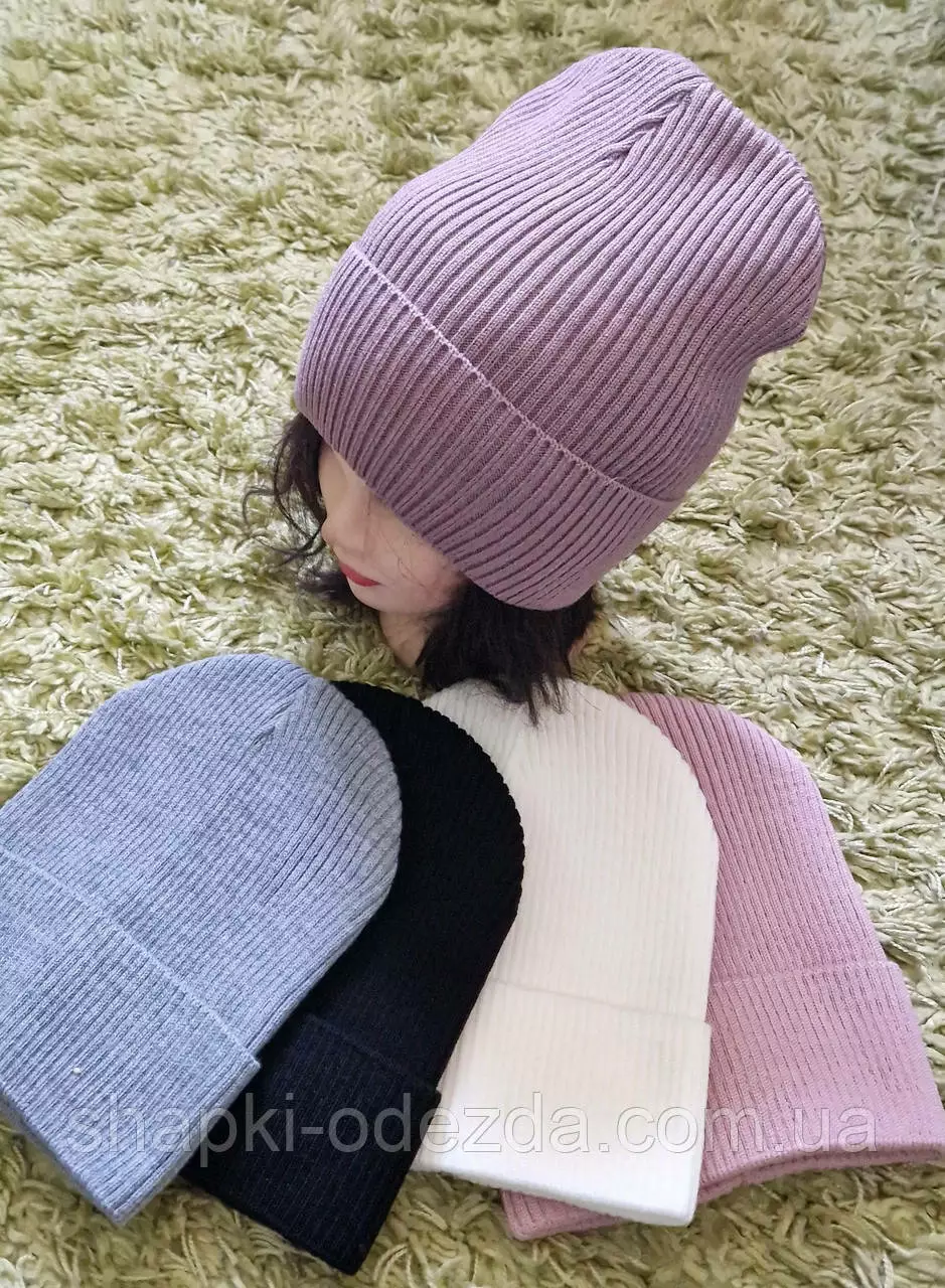 Шапки рубчик резинка для девочек Оптом одинарная