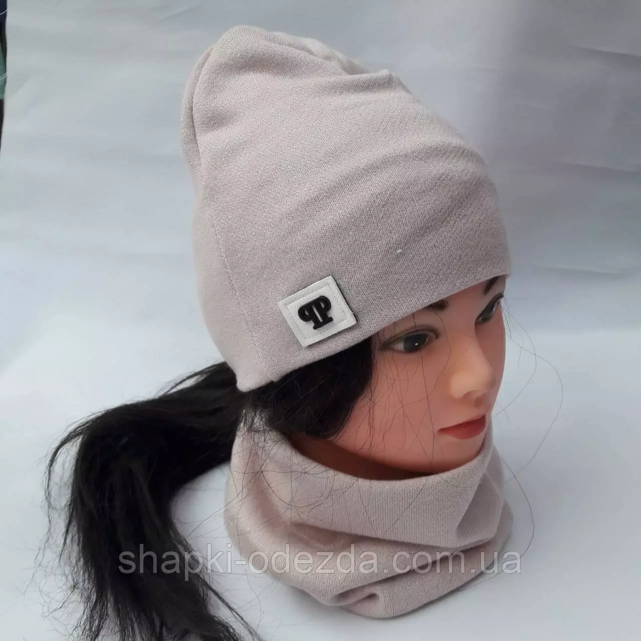 Трикотажная шапка + хамут двойная р 50-52