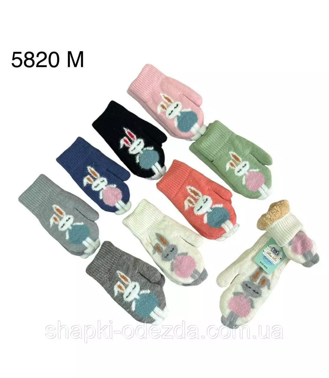 Варежки для девочек Оптом на меху двойные "Зайчик" 4-6 лет