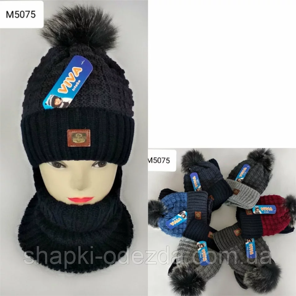 Вязаная шапка + баф для мальчика на флисе 3-12 лет