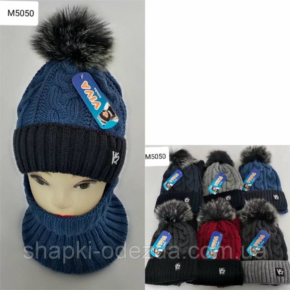 Вязаная шапка + шарф для мальчика на флисе на 3-12 лет